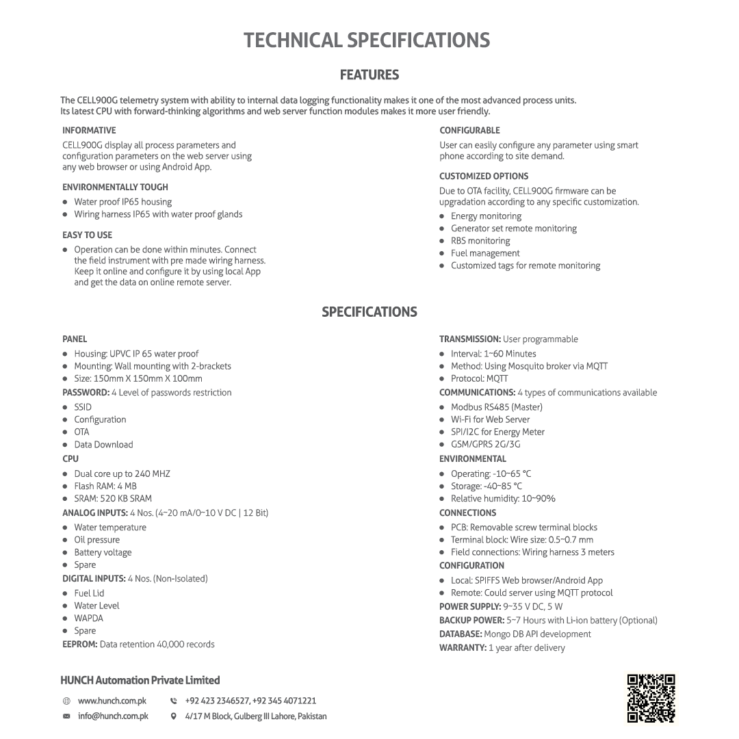 CELL900G display all process parameters and configuration parameters on the web server using any web browser or using Android App.